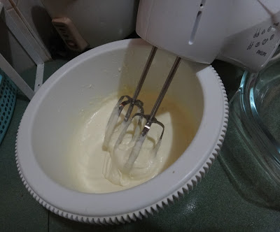 1. Pukul cream cheese, whipping cream, gula kastor dan esen vanilla sampai kembang.