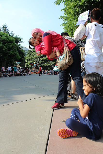 Bila dah sampai sini, Eisya masih kata bukan sebab dia belum jumpa Mickey Mouse. Hahaha.. Sabar nak, sabar. Adalah tu kejap lagi. Orang agak ramai. Tetiba rasa 'Eh, Hong Kong cuti ke hari ni?' Cuaca pun agak panas. Tak sejuk langsung. Jacket aku memang tinggal terus. Bawak budak-budak nyer je. Manalah tau tetiba sejuk kang.